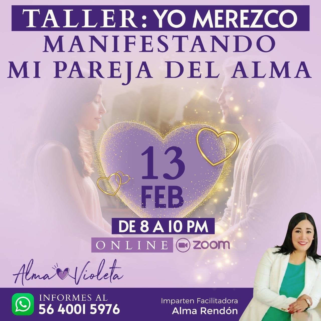 Este taller es una experiencia transformadora 🌟 diseñada para todos aquellos que desean manifestar una relación auténtica, consciente y llena de amor verdadero. Sanar tu corazón y tu alma: Liberar el dolor de relaciones pasadas, sanar el corazón roto 💔 y recuperar tu energía